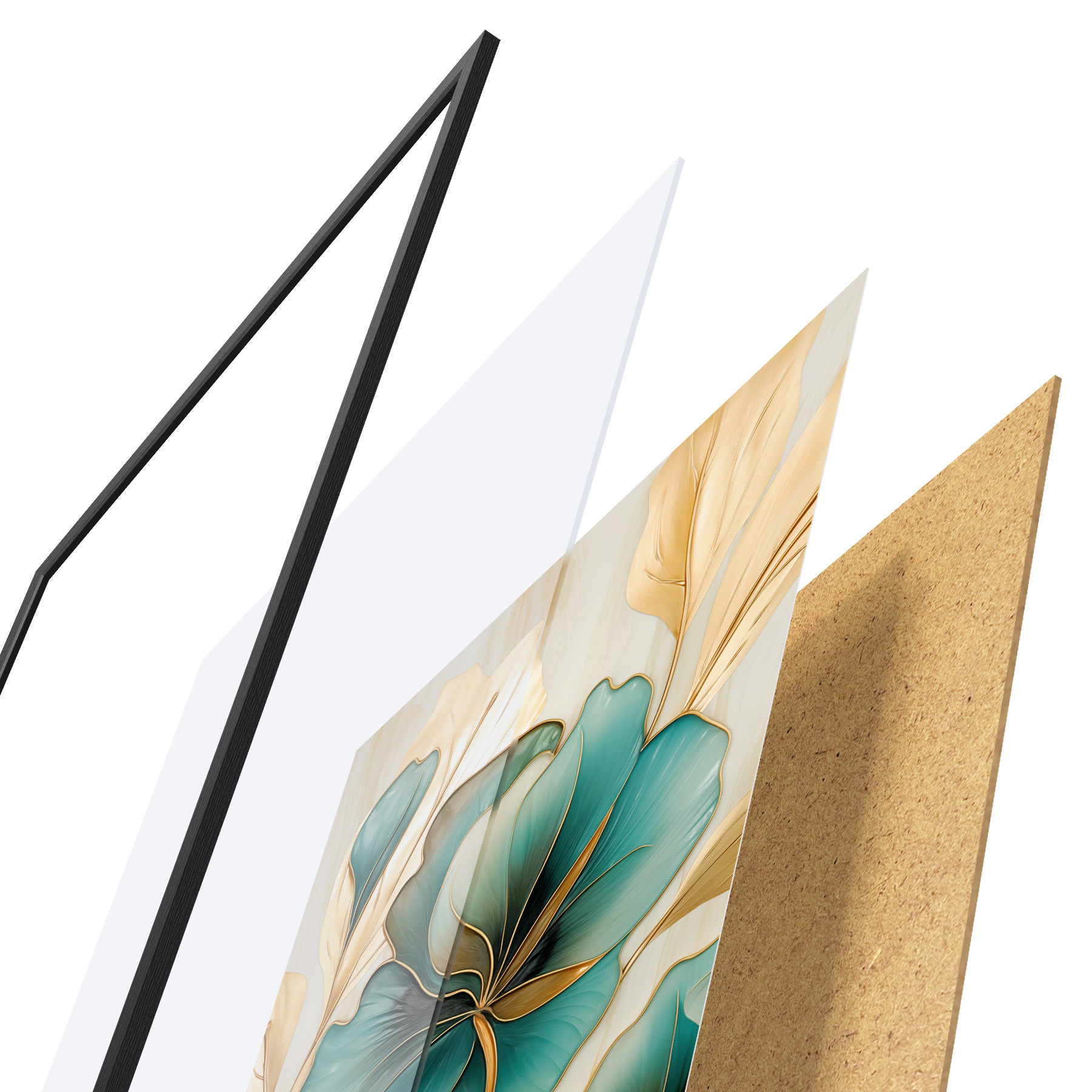 Plakatą sudaro rėmas, pleksiklas, atspausdintas vaizdas ir medžio drožlių plokštės pagrindas. Plakatą galima iš karto pakabinti ant sienos dėl kitoje pusėje esančių laikiklių.