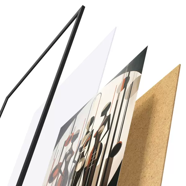 Plakatą sudaro rėmas, pleksiklas, atspausdintas vaizdas ir medžio drožlių plokštės pagrindas. Plakatą galima iš karto pakabinti ant sienos dėl kitoje pusėje esančių laikiklių.