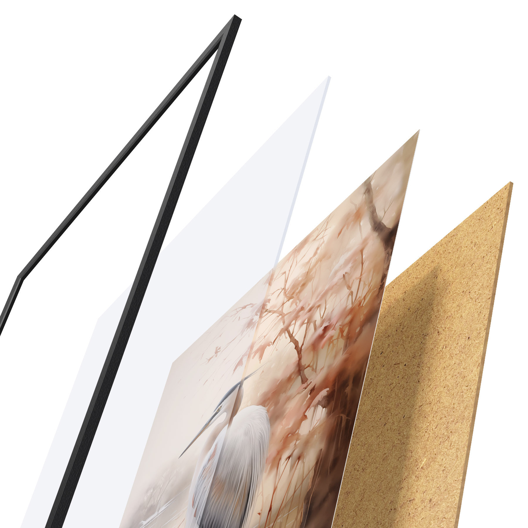 Plakatą sudaro rėmas, pleksiklas, atspausdintas vaizdas ir medžio drožlių plokštės pagrindas. Plakatą galima iš karto pakabinti ant sienos dėl kitoje pusėje esančių laikiklių.