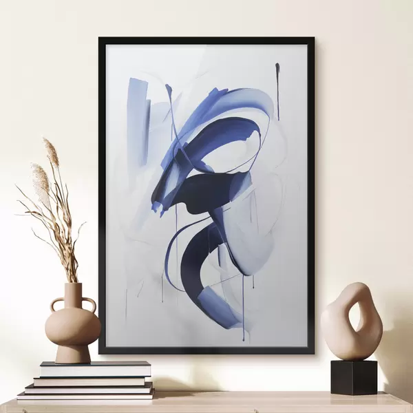 Plakatas Abstrakčios mėlynos teptuko potėpių formos su sklandžiomis linijomis ir kreivėmis ant balto fono, modernusis menas Ne f47428