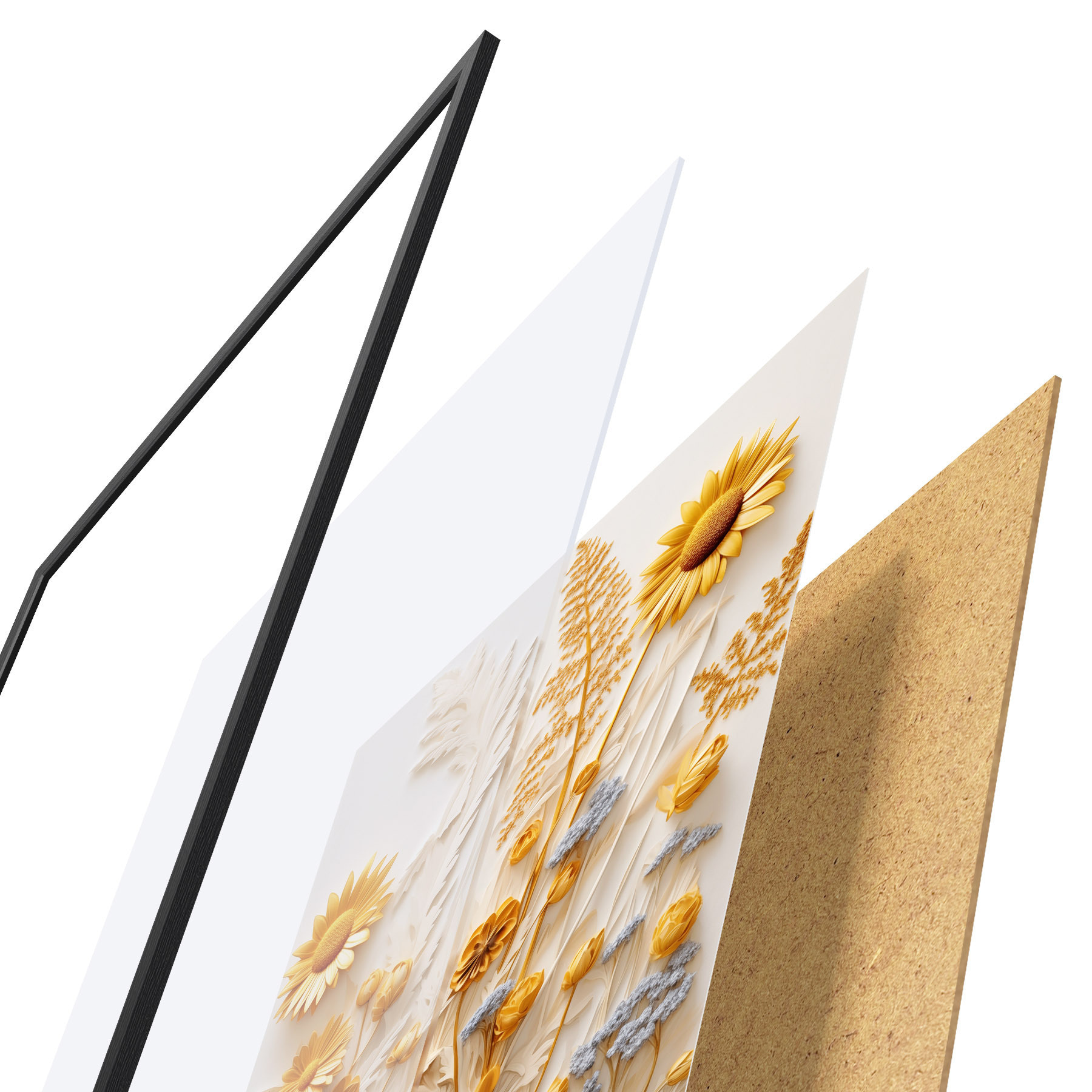 Plakatą sudaro rėmas, pleksiklas, atspausdintas vaizdas ir medžio drožlių plokštės pagrindas. Plakatą galima iš karto pakabinti ant sienos dėl kitoje pusėje esančių laikiklių.