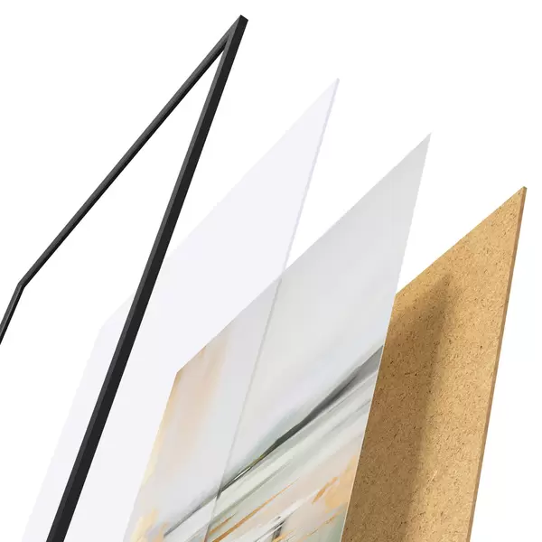 Plakatą sudaro rėmas, pleksiklas, atspausdintas vaizdas ir medžio drožlių plokštės pagrindas. Plakatą galima iš karto pakabinti ant sienos dėl kitoje pusėje esančių laikiklių.