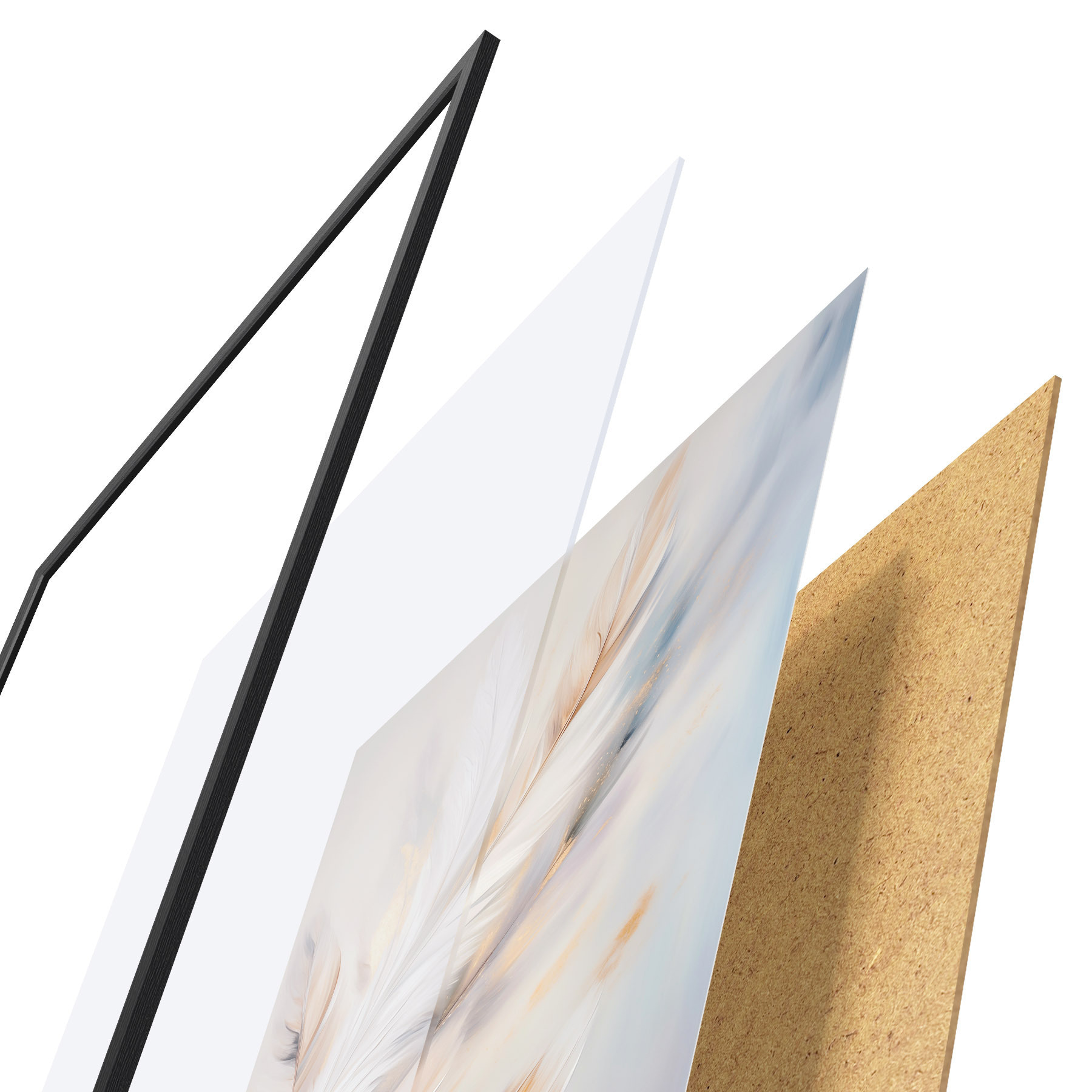 Plakatą sudaro rėmas, pleksiklas, atspausdintas vaizdas ir medžio drožlių plokštės pagrindas. Plakatą galima iš karto pakabinti ant sienos dėl kitoje pusėje esančių laikiklių.