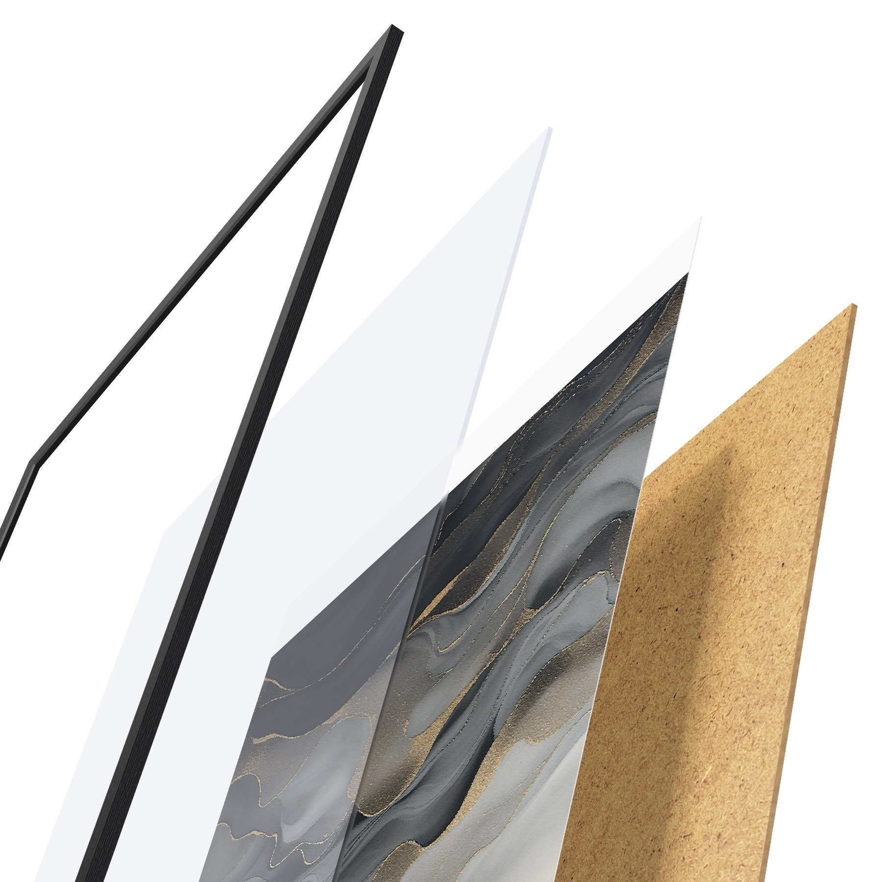 Plakatą sudaro rėmas, pleksiklas, atspausdintas vaizdas ir medžio drožlių plokštės pagrindas. Plakatą galima iš karto pakabinti ant sienos dėl kitoje pusėje esančių laikiklių.