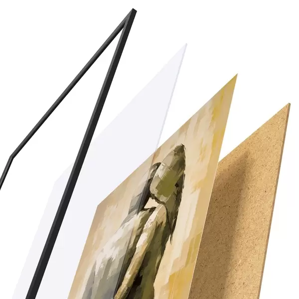 Plakatą sudaro rėmas, pleksiklas, atspausdintas vaizdas ir medžio drožlių plokštės pagrindas. Plakatą galima iš karto pakabinti ant sienos dėl kitoje pusėje esančių laikiklių.