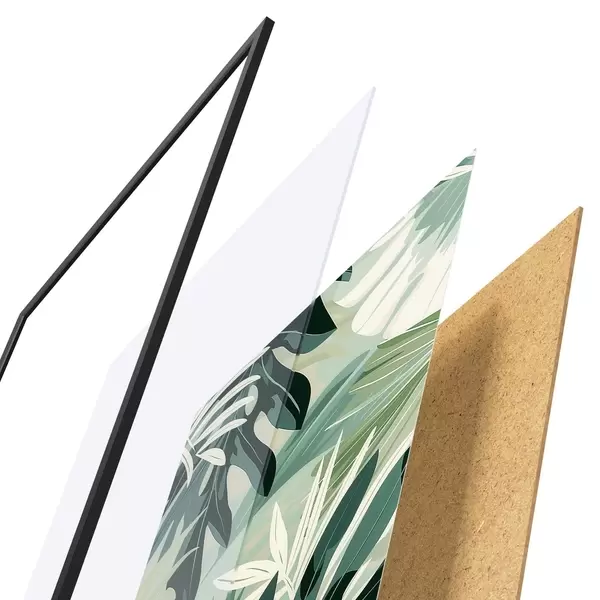 Plakatą sudaro rėmas, pleksiklas, atspausdintas vaizdas ir medžio drožlių plokštės pagrindas. Plakatą galima iš karto pakabinti ant sienos dėl kitoje pusėje esančių laikiklių.
