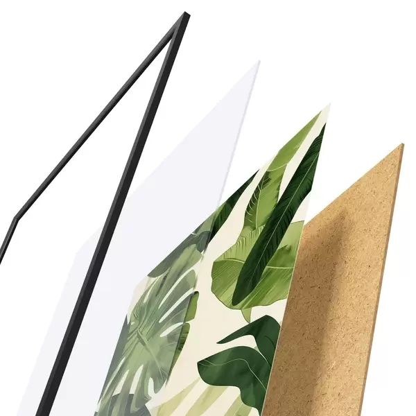 Plakatą sudaro rėmas, pleksiklas, atspausdintas vaizdas ir medžio drožlių plokštės pagrindas. Plakatą galima iš karto pakabinti ant sienos dėl kitoje pusėje esančių laikiklių.