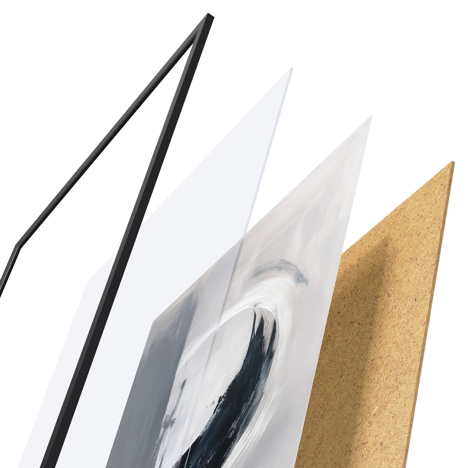 Plakatą sudaro rėmas, pleksiklas, atspausdintas vaizdas ir medžio drožlių plokštės pagrindas. Plakatą galima iš karto pakabinti ant sienos dėl kitoje pusėje esančių laikiklių.