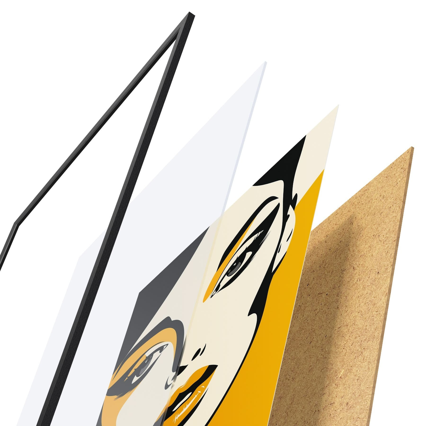 Plakatą sudaro rėmas, pleksiklas, atspausdintas vaizdas ir medžio drožlių plokštės pagrindas. Plakatą galima iš karto pakabinti ant sienos dėl kitoje pusėje esančių laikiklių.