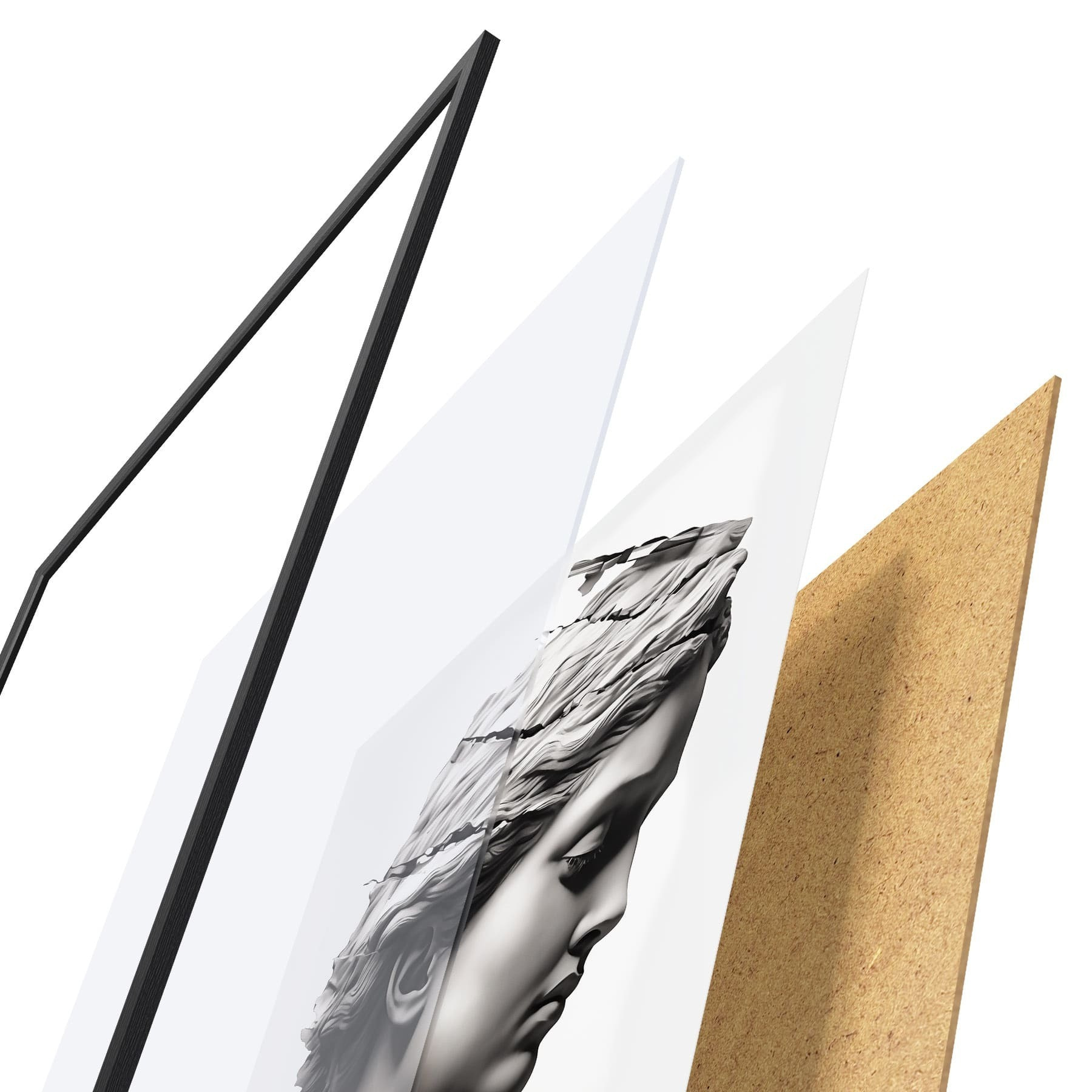Plakatą sudaro rėmas, pleksiklas, atspausdintas vaizdas ir medžio drožlių plokštės pagrindas. Plakatą galima iš karto pakabinti ant sienos dėl kitoje pusėje esančių laikiklių.