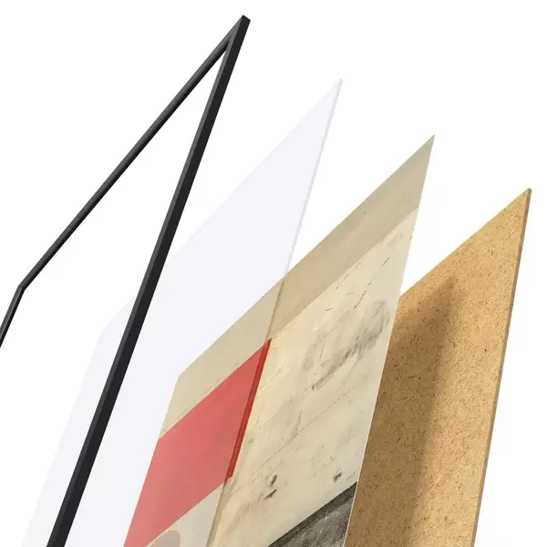 Plakatą sudaro rėmas, pleksiklas, atspausdintas vaizdas ir medžio drožlių plokštės pagrindas. Plakatą galima iš karto pakabinti ant sienos dėl kitoje pusėje esančių laikiklių.