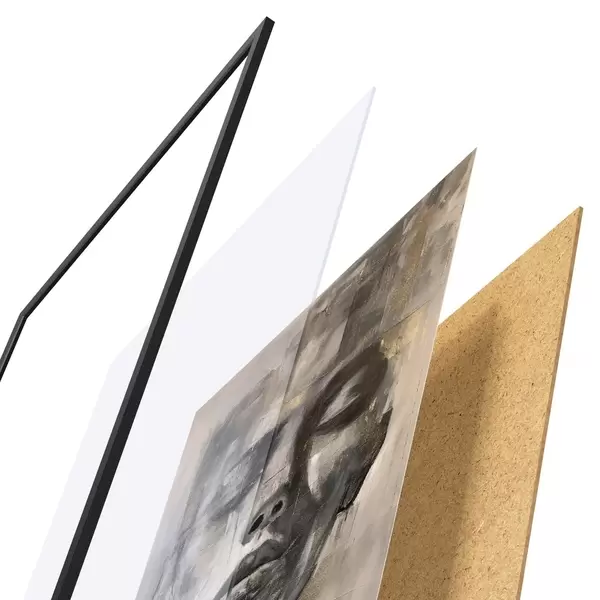 Plakatą sudaro rėmas, pleksiklas, atspausdintas vaizdas ir medžio drožlių plokštės pagrindas. Plakatą galima iš karto pakabinti ant sienos dėl kitoje pusėje esančių laikiklių.