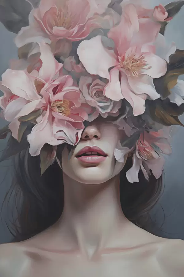Plakatas Siurrealistinis moters su gėlėmis portretas f47489