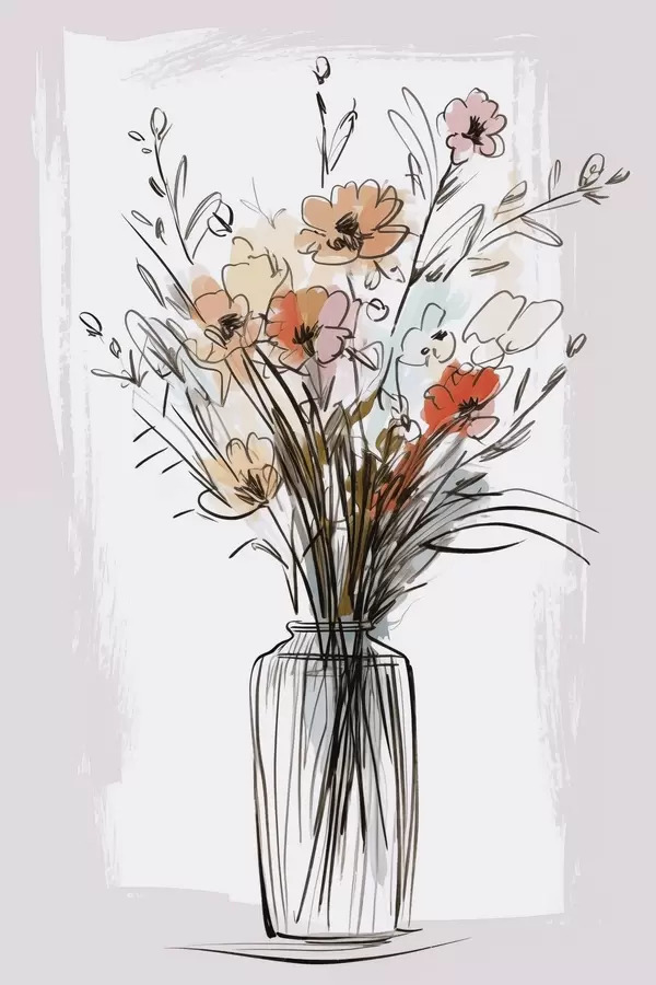 Plakatas Gėlės vazoje, piešinio imitacija f47495