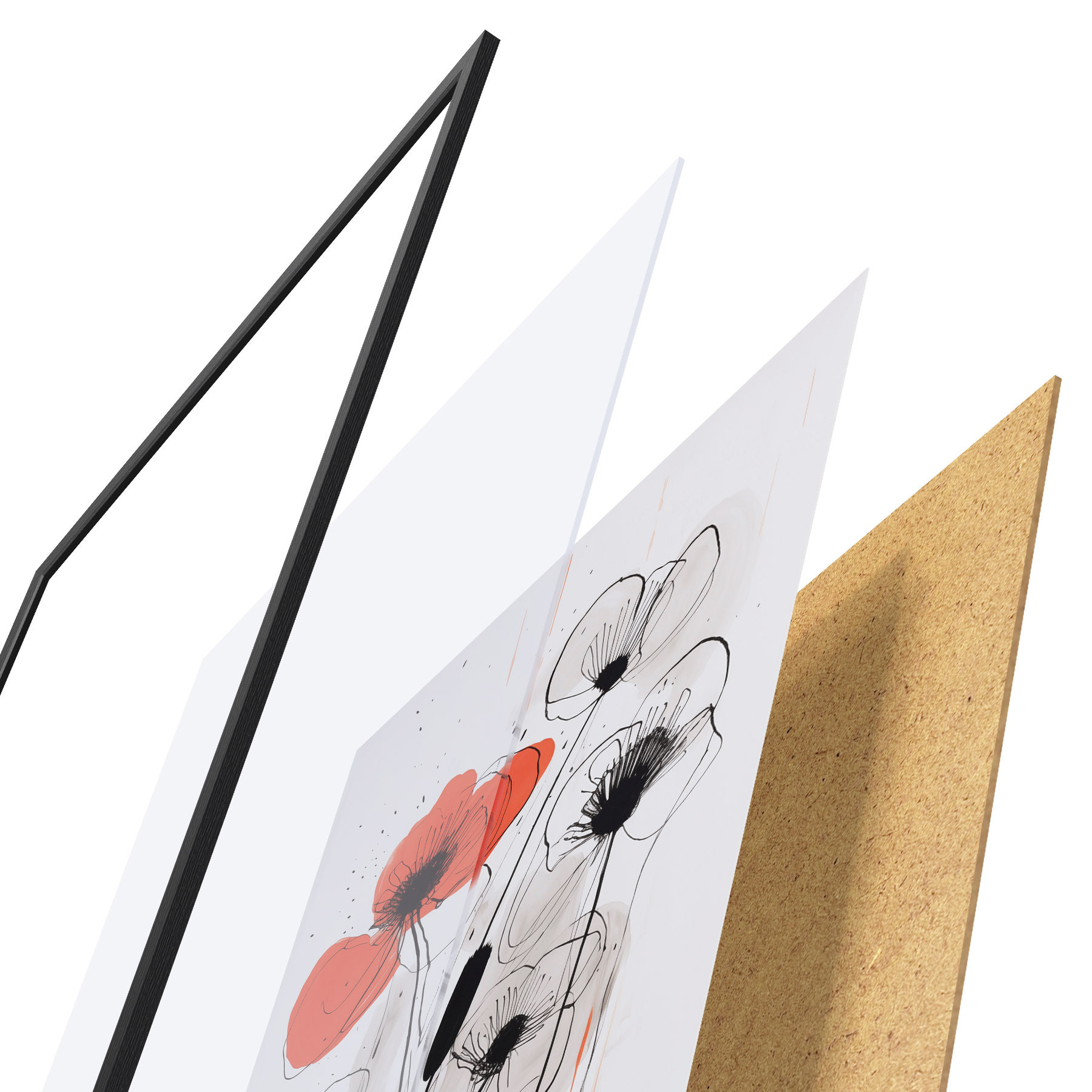 Plakatą sudaro rėmas, pleksiklas, atspausdintas vaizdas ir medžio drožlių plokštės pagrindas. Plakatą galima iš karto pakabinti ant sienos dėl kitoje pusėje esančių laikiklių.