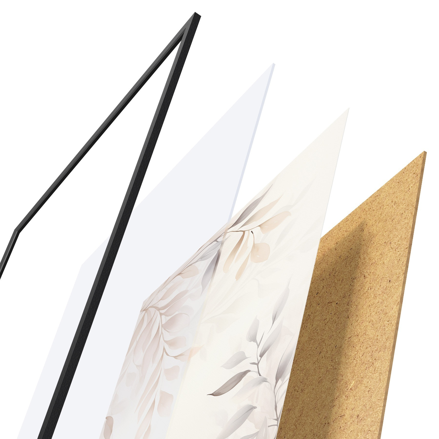 Plakatą sudaro rėmas, pleksiklas, atspausdintas vaizdas ir medžio drožlių plokštės pagrindas. Plakatą galima iš karto pakabinti ant sienos dėl kitoje pusėje esančių laikiklių.