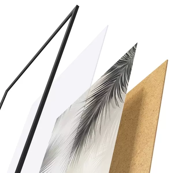 Plakatą sudaro rėmas, pleksiklas, atspausdintas vaizdas ir medžio drožlių plokštės pagrindas. Plakatą galima iš karto pakabinti ant sienos dėl kitoje pusėje esančių laikiklių.