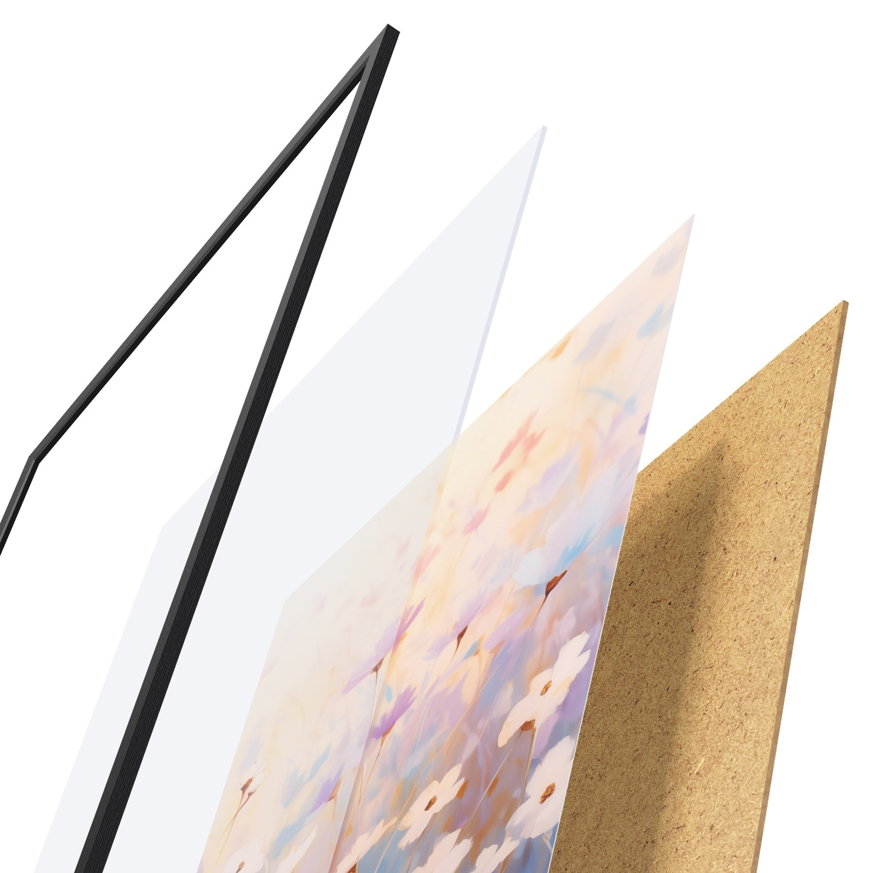 Plakatą sudaro rėmas, pleksiklas, atspausdintas vaizdas ir medžio drožlių plokštės pagrindas. Plakatą galima iš karto pakabinti ant sienos dėl kitoje pusėje esančių laikiklių.