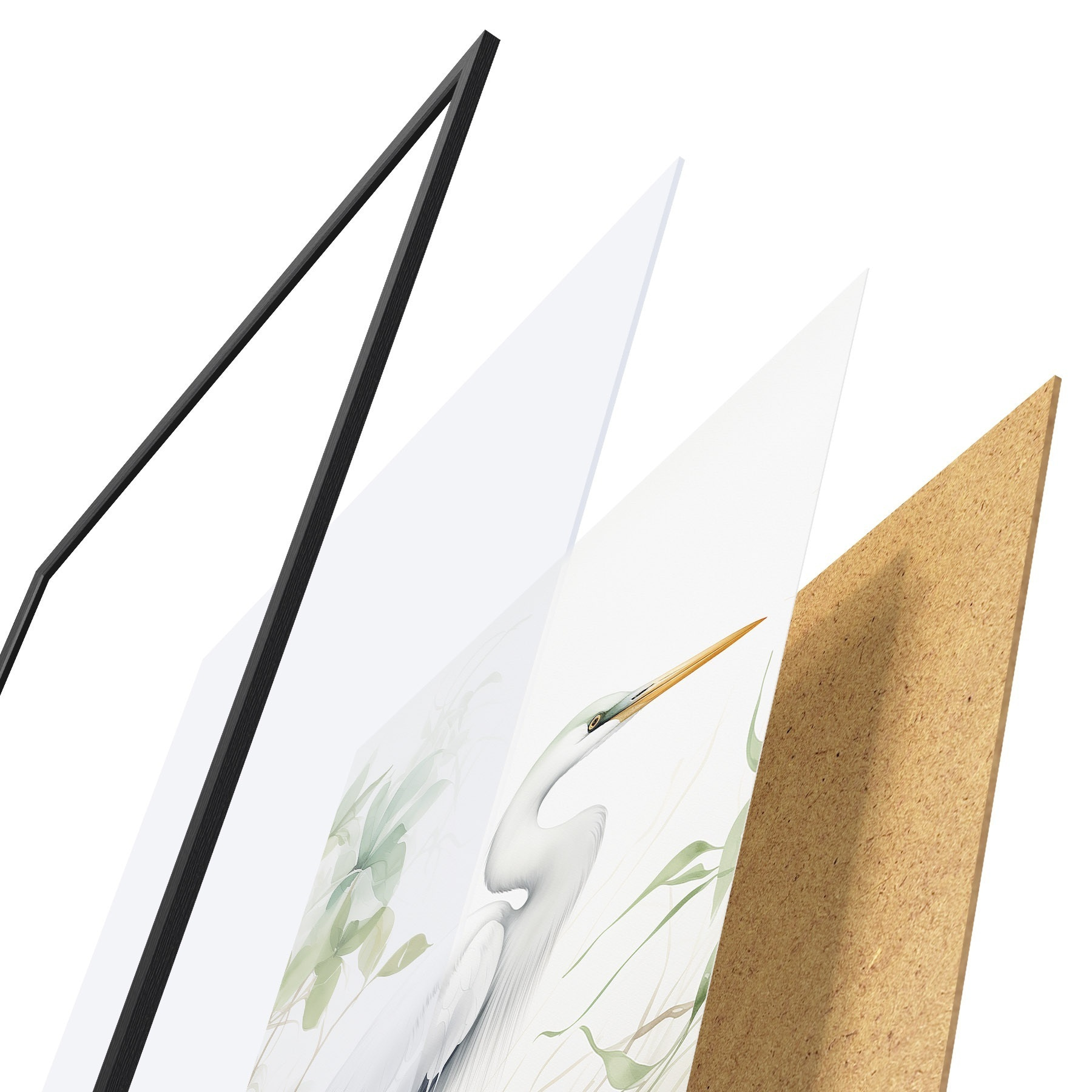 Plakatą sudaro rėmas, pleksiklas, atspausdintas vaizdas ir medžio drožlių plokštės pagrindas. Plakatą galima iš karto pakabinti ant sienos dėl kitoje pusėje esančių laikiklių.
