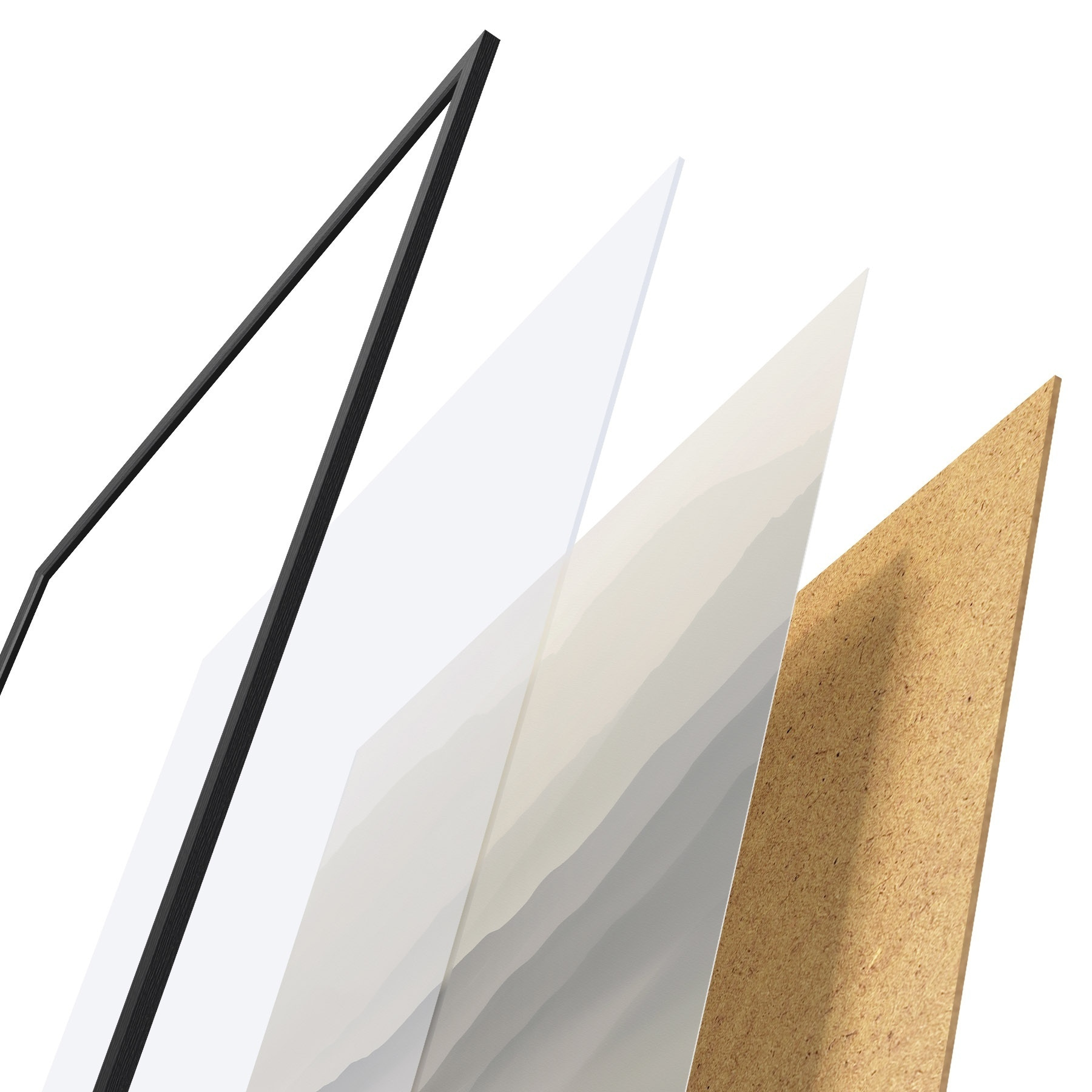 Plakatą sudaro rėmas, pleksiklas, atspausdintas vaizdas ir medžio drožlių plokštės pagrindas. Plakatą galima iš karto pakabinti ant sienos dėl kitoje pusėje esančių laikiklių.