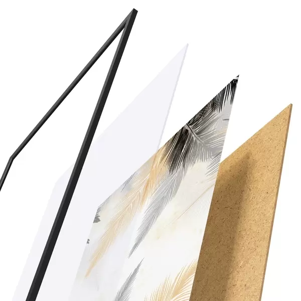 Plakatą sudaro rėmas, pleksiklas, atspausdintas vaizdas ir medžio drožlių plokštės pagrindas. Plakatą galima iš karto pakabinti ant sienos dėl kitoje pusėje esančių laikiklių.
