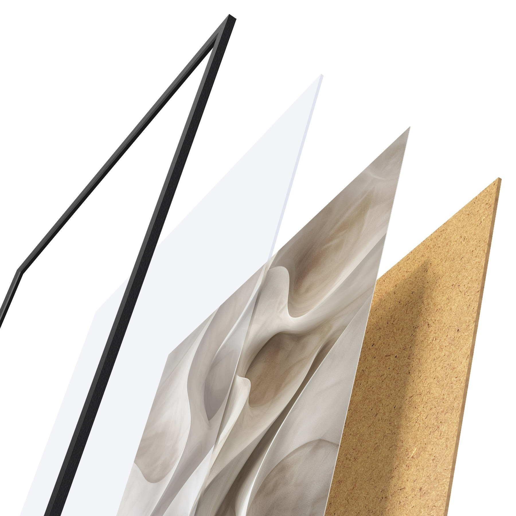 Plakatą sudaro rėmas, pleksiklas, atspausdintas vaizdas ir medžio drožlių plokštės pagrindas. Plakatą galima iš karto pakabinti ant sienos dėl kitoje pusėje esančių laikiklių.