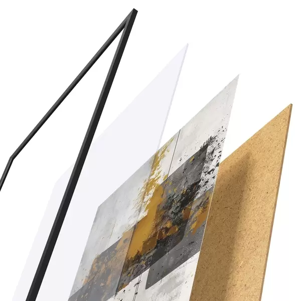 Plakatą sudaro rėmas, pleksiklas, atspausdintas vaizdas ir medžio drožlių plokštės pagrindas. Plakatą galima iš karto pakabinti ant sienos dėl kitoje pusėje esančių laikiklių.
