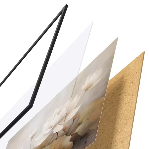 Plakatą sudaro rėmas, pleksiklas, atspausdintas vaizdas ir medžio drožlių plokštės pagrindas. Plakatą galima iš karto pakabinti ant sienos dėl kitoje pusėje esančių laikiklių.