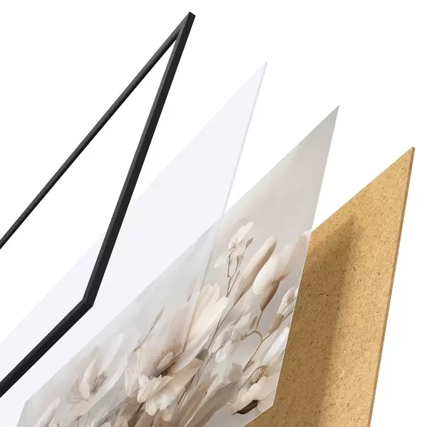Plakatą sudaro rėmas, pleksiklas, atspausdintas vaizdas ir medžio drožlių plokštės pagrindas. Plakatą galima iš karto pakabinti ant sienos dėl kitoje pusėje esančių laikiklių.