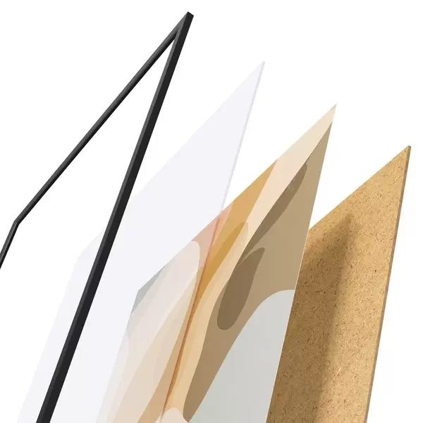 Plakatą sudaro rėmas, pleksiklas, atspausdintas vaizdas ir medžio drožlių plokštės pagrindas. Plakatą galima iš karto pakabinti ant sienos dėl kitoje pusėje esančių laikiklių.