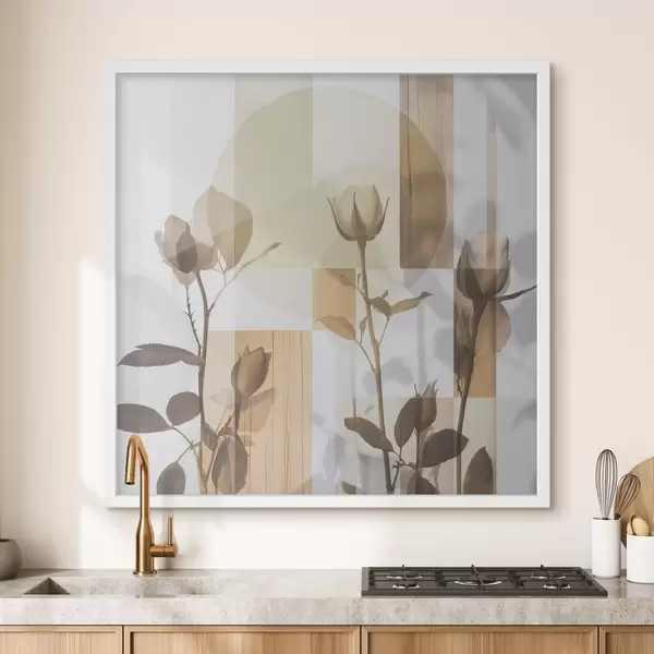 Plakatas Abstrakcija su gėlėmis ir geometrinėmis figūromis f47654