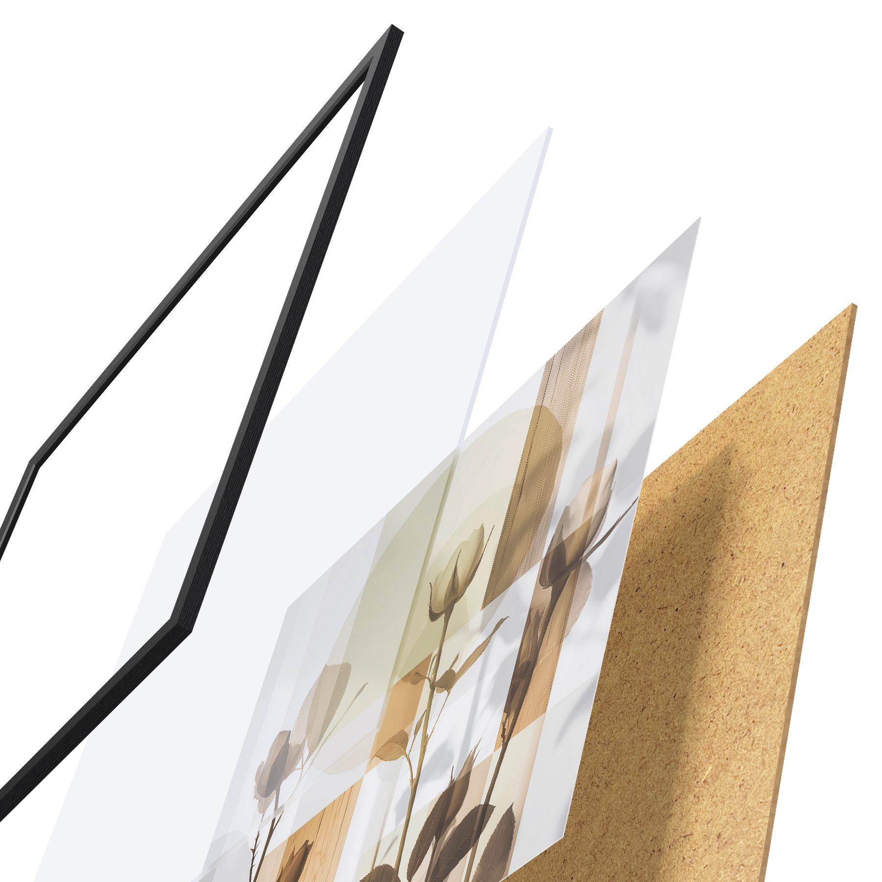 Plakatą sudaro rėmas, pleksiklas, atspausdintas vaizdas ir medžio drožlių plokštės pagrindas. Plakatą galima iš karto pakabinti ant sienos dėl kitoje pusėje esančių laikiklių.