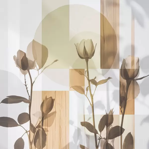 Plakatas Abstrakcija su gėlėmis ir geometrinėmis figūromis f47654