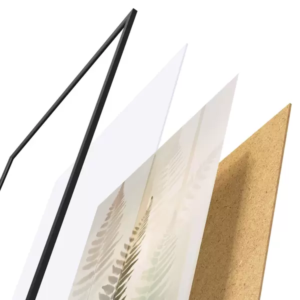 Plakatą sudaro rėmas, pleksiklas, atspausdintas vaizdas ir medžio drožlių plokštės pagrindas. Plakatą galima iš karto pakabinti ant sienos dėl kitoje pusėje esančių laikiklių.
