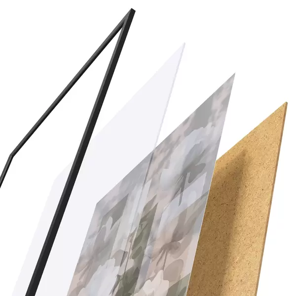 Plakatą sudaro rėmas, pleksiklas, atspausdintas vaizdas ir medžio drožlių plokštės pagrindas. Plakatą galima iš karto pakabinti ant sienos dėl kitoje pusėje esančių laikiklių.