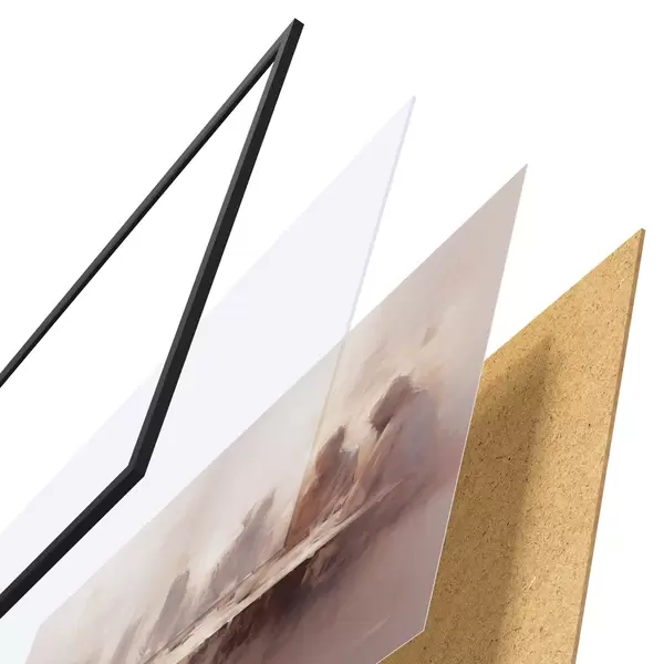 Plakatą sudaro rėmas, pleksiklas, atspausdintas vaizdas ir medžio drožlių plokštės pagrindas. Plakatą galima iš karto pakabinti ant sienos dėl kitoje pusėje esančių laikiklių.