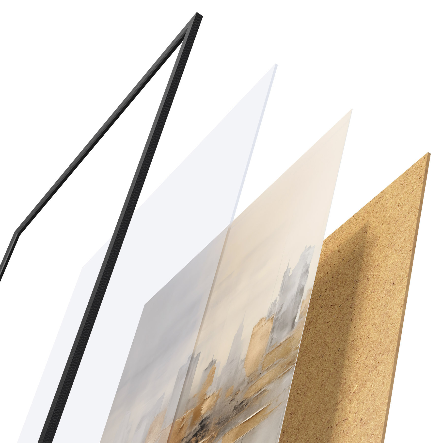 Plakatą sudaro rėmas, pleksiklas, atspausdintas vaizdas ir medžio drožlių plokštės pagrindas. Plakatą galima iš karto pakabinti ant sienos dėl kitoje pusėje esančių laikiklių.