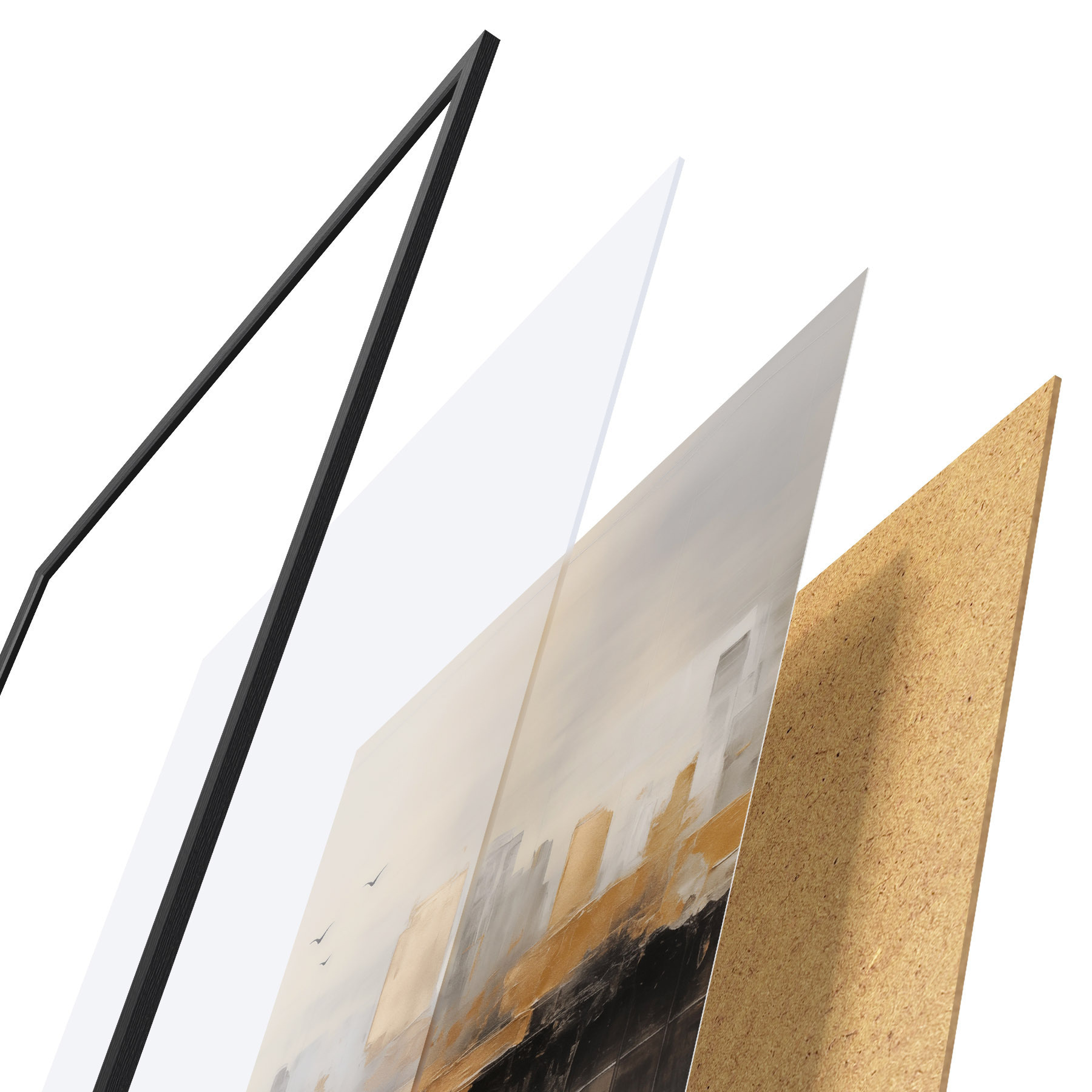 Plakatą sudaro rėmas, pleksiklas, atspausdintas vaizdas ir medžio drožlių plokštės pagrindas. Plakatą galima iš karto pakabinti ant sienos dėl kitoje pusėje esančių laikiklių.
