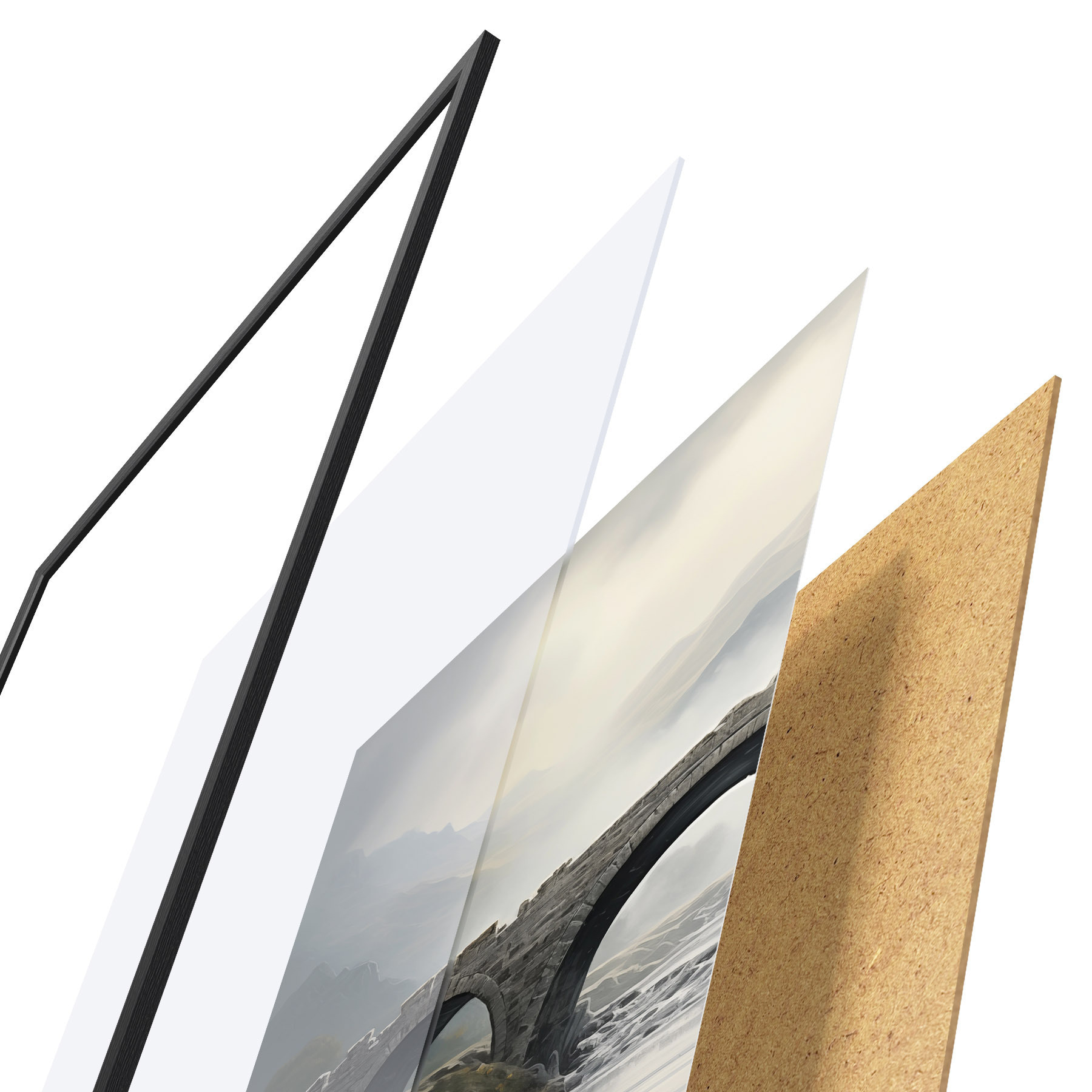 Plakatą sudaro rėmas, pleksiklas, atspausdintas vaizdas ir medžio drožlių plokštės pagrindas. Plakatą galima iš karto pakabinti ant sienos dėl kitoje pusėje esančių laikiklių.