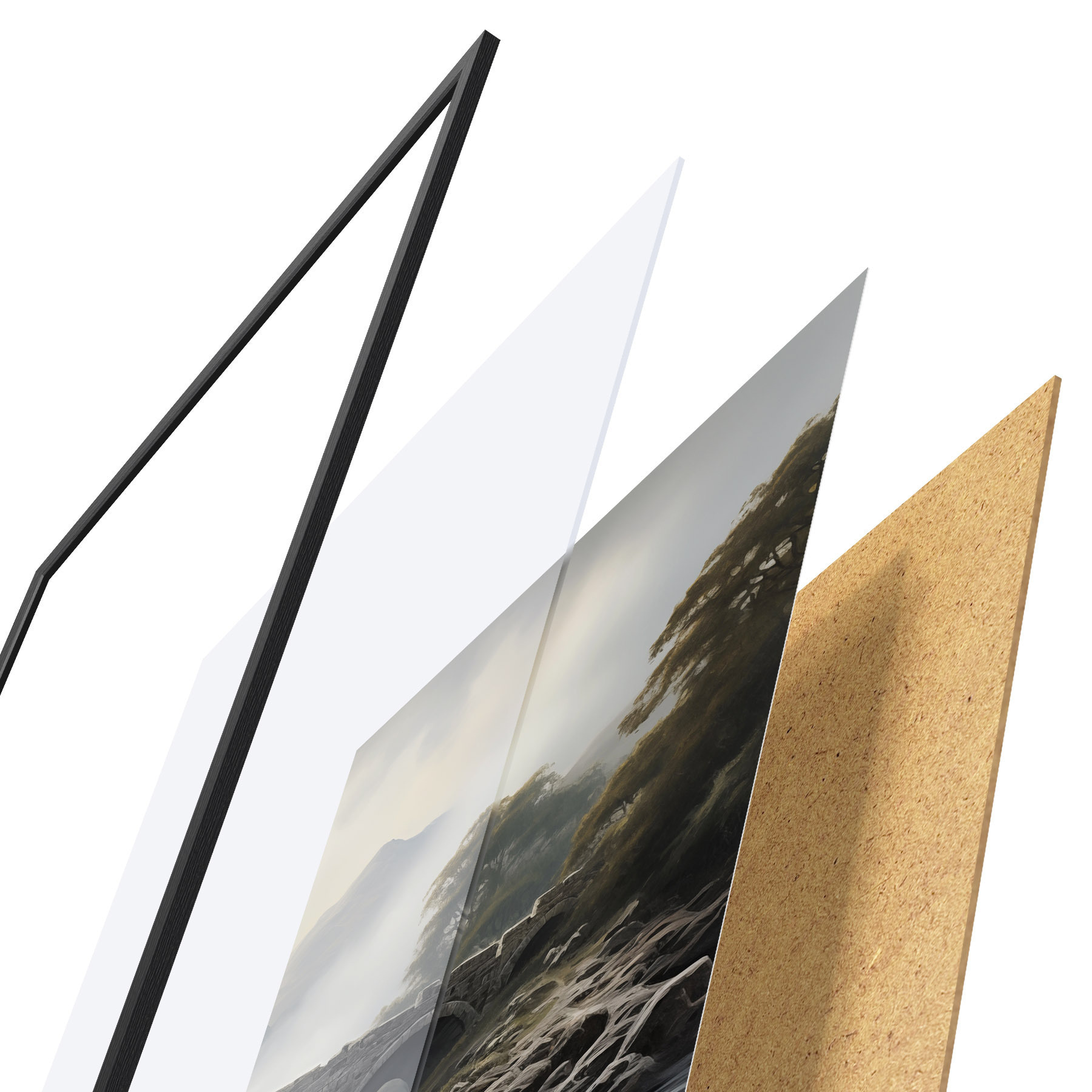Plakatą sudaro rėmas, pleksiklas, atspausdintas vaizdas ir medžio drožlių plokštės pagrindas. Plakatą galima iš karto pakabinti ant sienos dėl kitoje pusėje esančių laikiklių.