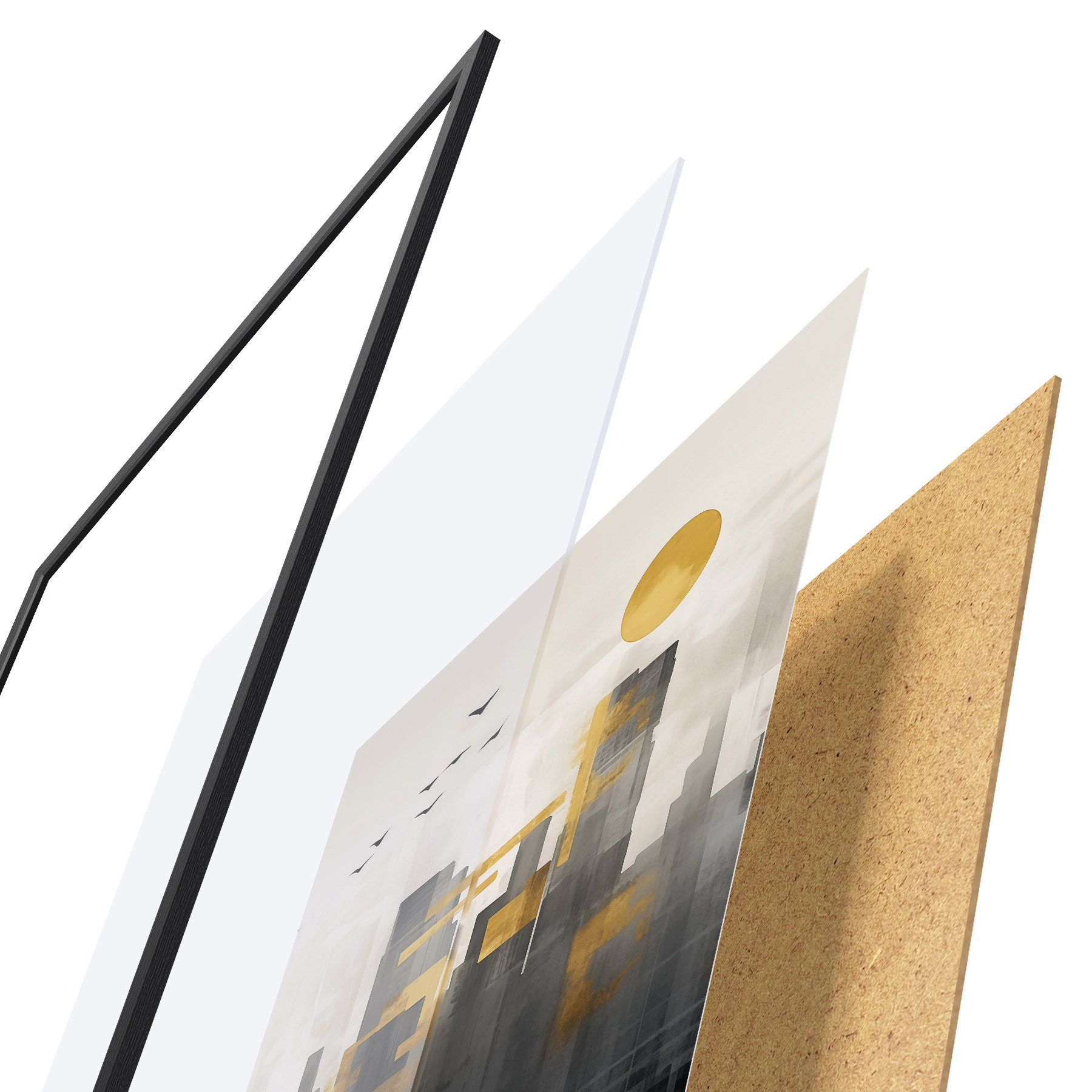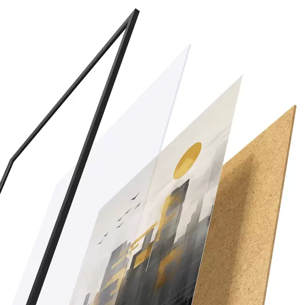 Plakatą sudaro rėmas, pleksiklas, atspausdintas vaizdas ir medžio drožlių plokštės pagrindas. Plakatą galima iš karto pakabinti ant sienos dėl kitoje pusėje esančių laikiklių.
