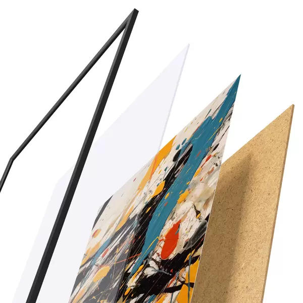 Plakatą sudaro rėmas, pleksiklas, atspausdintas vaizdas ir medžio drožlių plokštės pagrindas. Plakatą galima iš karto pakabinti ant sienos dėl kitoje pusėje esančių laikiklių.