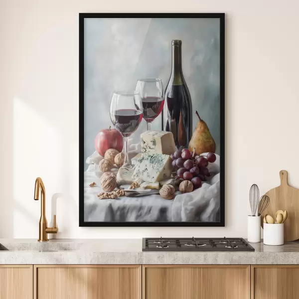 Plakatas natūra su vynu, sūriu ir riešutais f47686