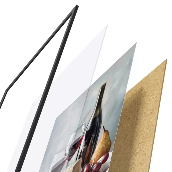 Plakatą sudaro rėmas, pleksiklas, atspausdintas vaizdas ir medžio drožlių plokštės pagrindas. Plakatą galima iš karto pakabinti ant sienos dėl kitoje pusėje esančių laikiklių.