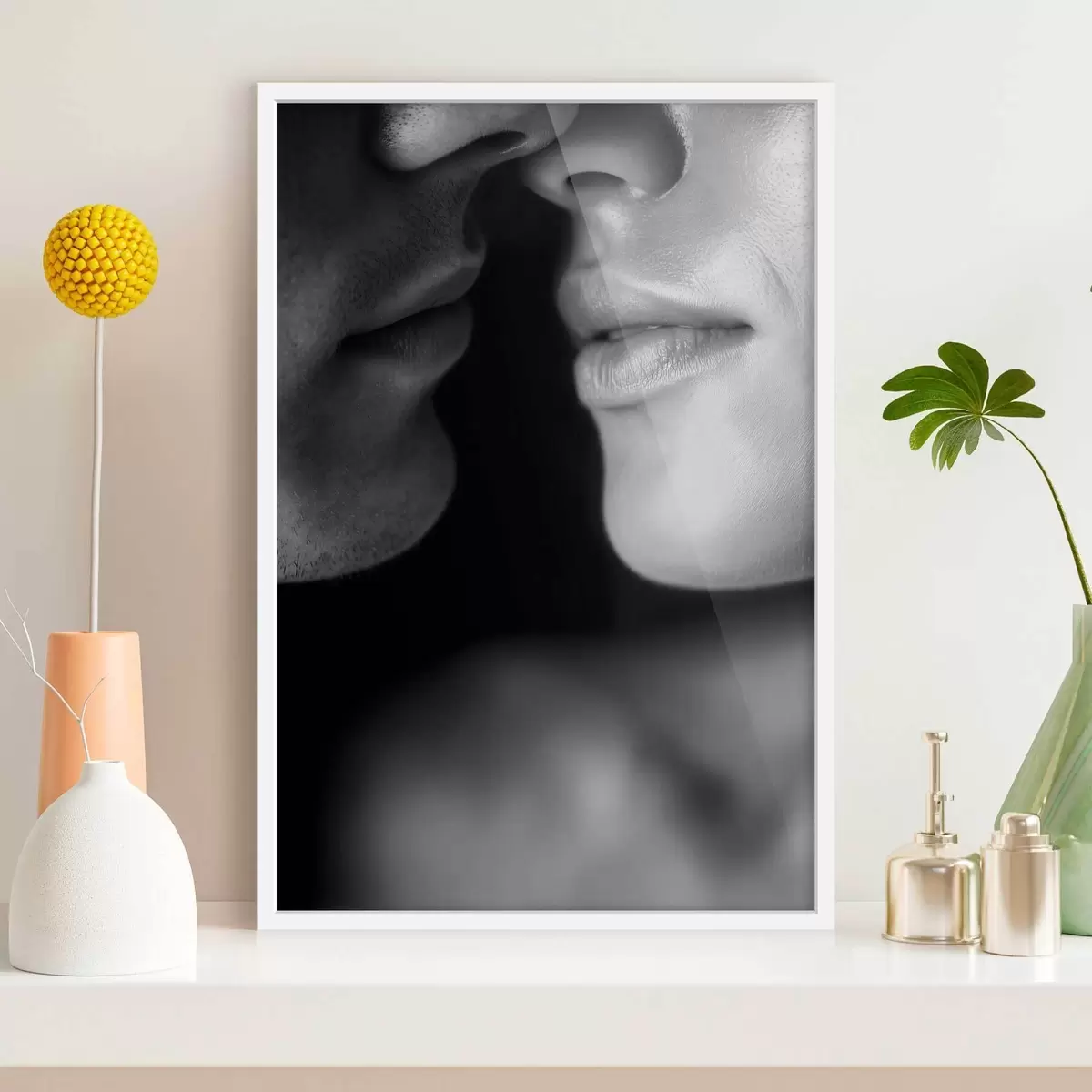 Plakatas vyro ir moters juodos ir baltos lūpos Ne f47687