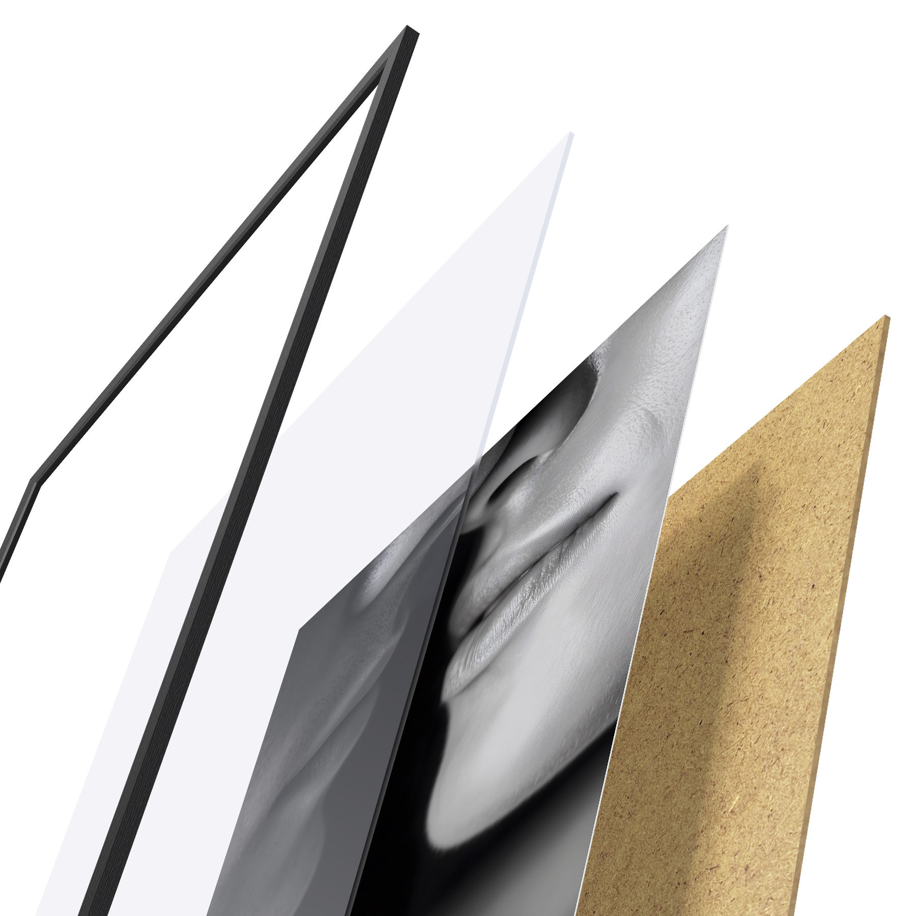 Plakatą sudaro rėmas, pleksiklas, atspausdintas vaizdas ir medžio drožlių plokštės pagrindas. Plakatą galima iš karto pakabinti ant sienos dėl kitoje pusėje esančių laikiklių.