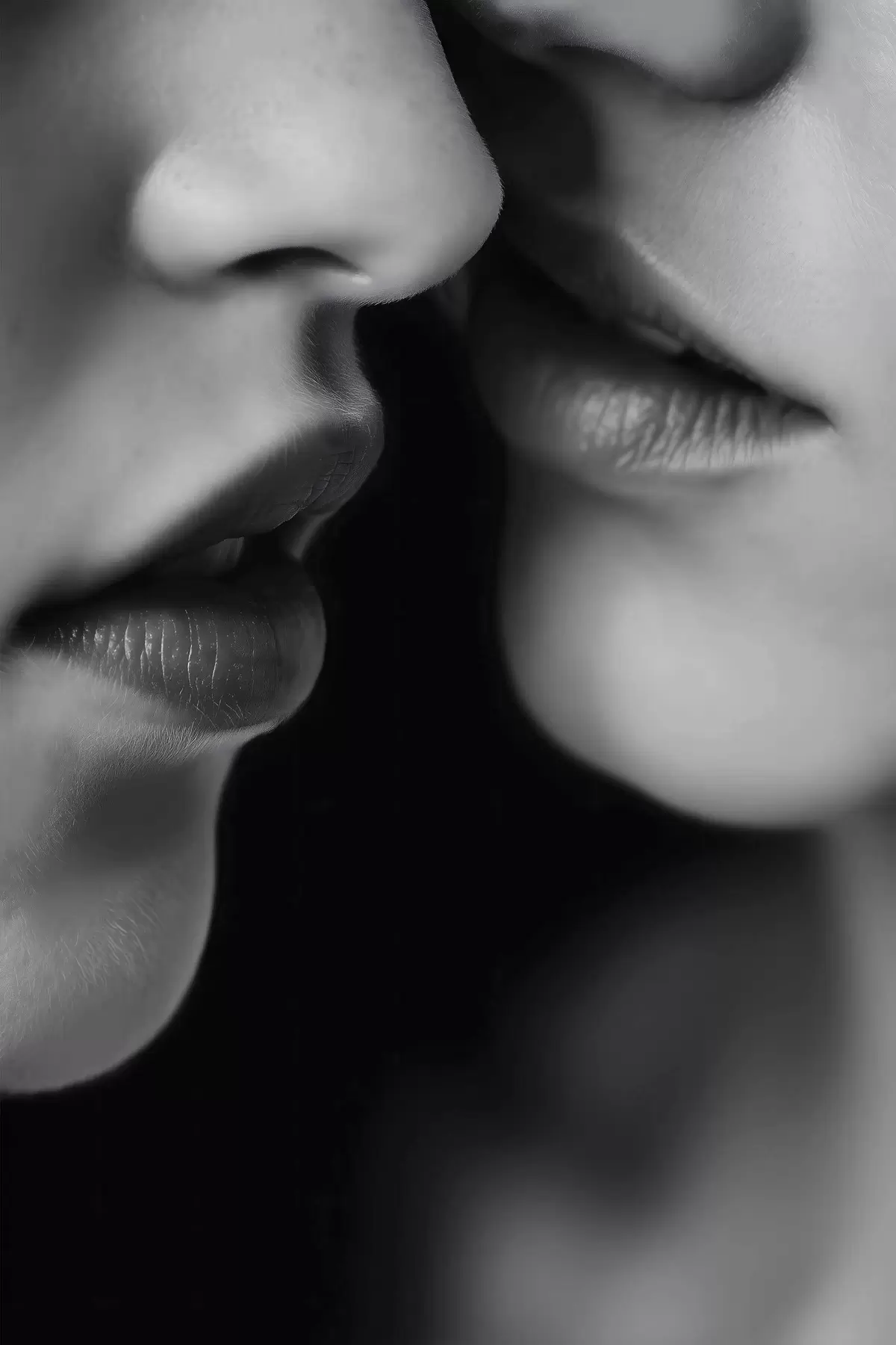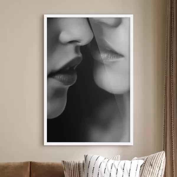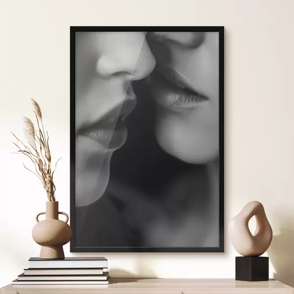 Plakatas dviejų moterų juodos ir baltos lūpos f47688