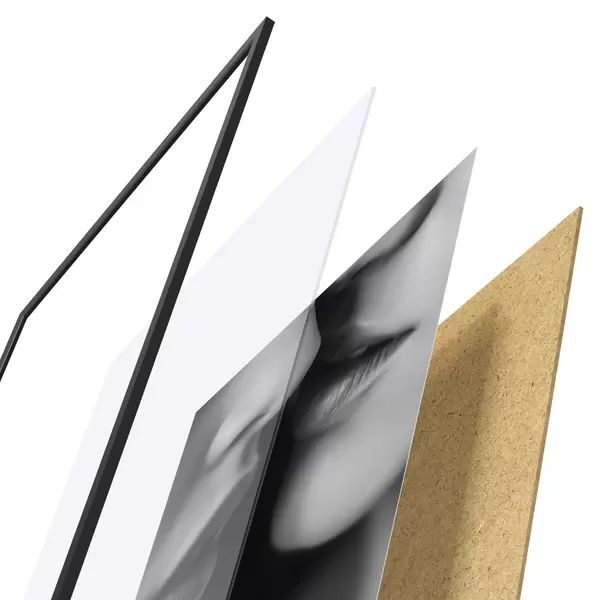 Plakatą sudaro rėmas, pleksiklas, atspausdintas vaizdas ir medžio drožlių plokštės pagrindas. Plakatą galima iš karto pakabinti ant sienos dėl kitoje pusėje esančių laikiklių.