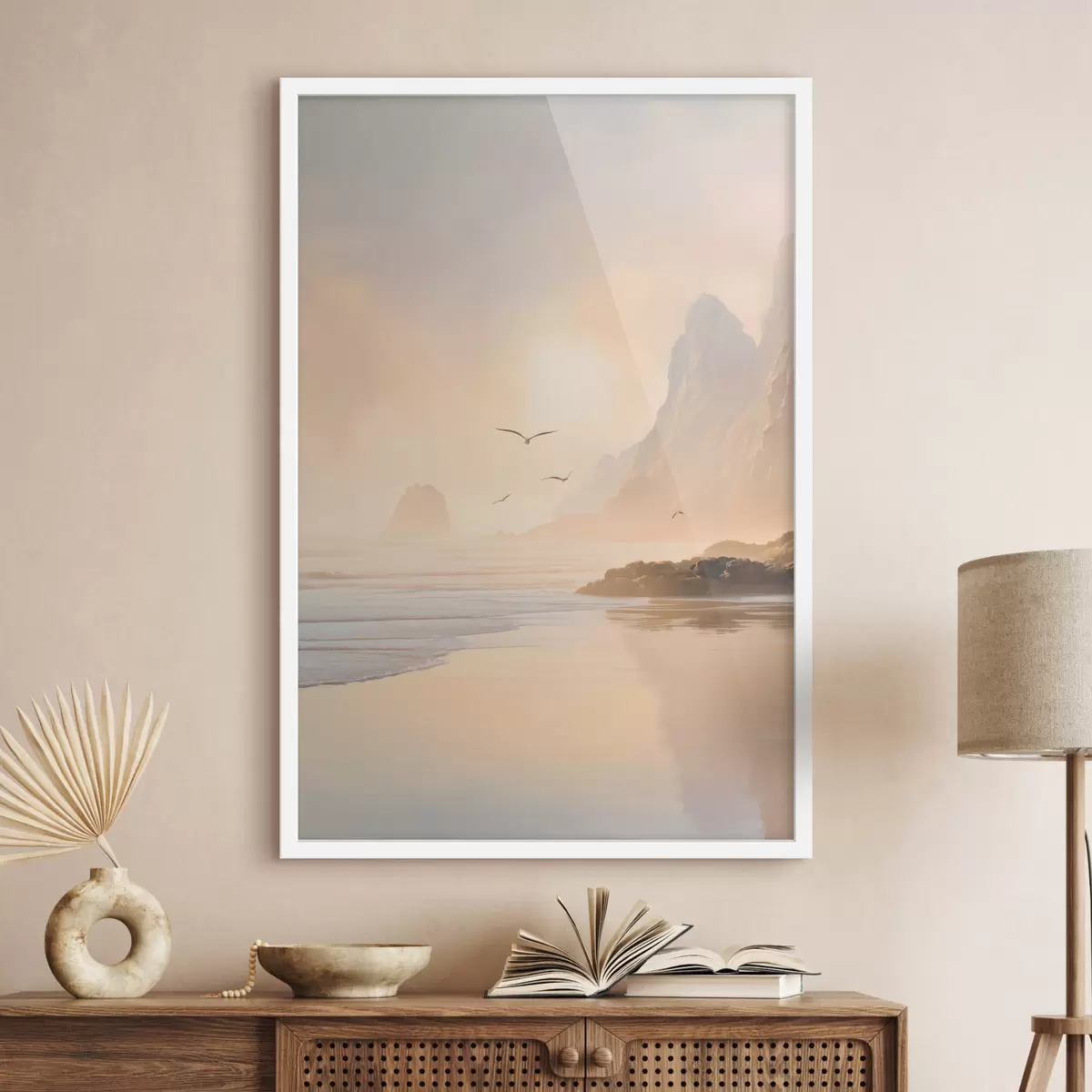 Plakatas jūros aušra kalnų fone f47690