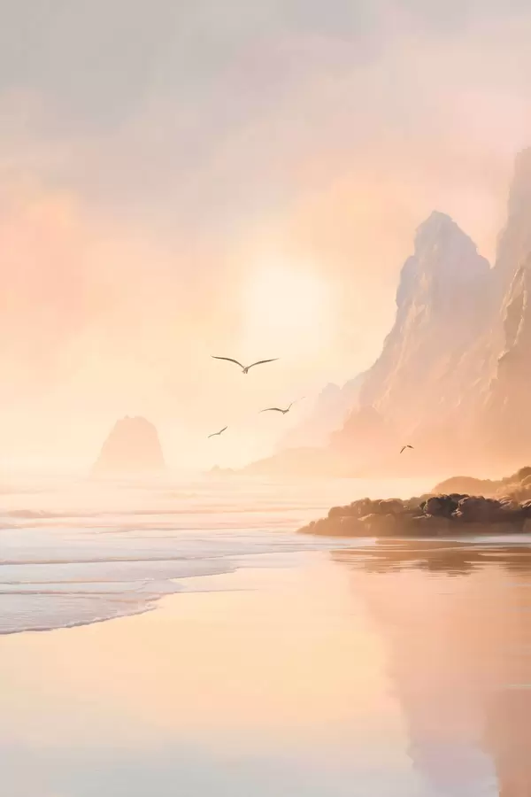 Plakatas jūros aušra kalnų fone f47690